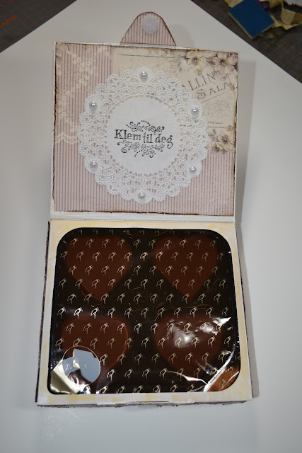 Har laget et posekort. Bildet er et utklippsbilde, tror det er fra Pion, det er også papiret. Har brukt diverse blomster, blondeservietten er stanset ut fra Cherry Lynn dies. Kanten på posen er stanset ut med MS punch, har brukt litt Gesso på kanten.